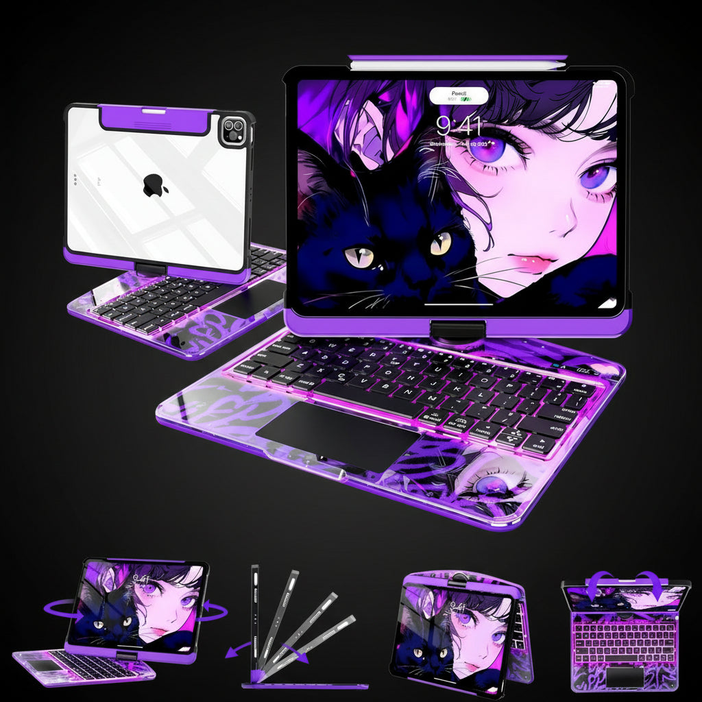 Turn your iPad into a neon-lit, laptop-style workstation with the Intermerge Clear Keyboard Case for iPad Air 11" & iPad Pro 11" – Neon Pulse. Designed for creators, students, gamers, and professionals, this cyberpunk-inspired case delivers 360° swivel freedom, a multi-touch trackpad, and a 7-color RGB backlit keyboard in one sleek, protective package.